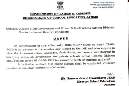 Schools in Jammu Division to Remain Closed till September 5 Amid Severe…